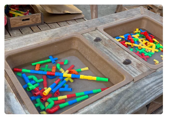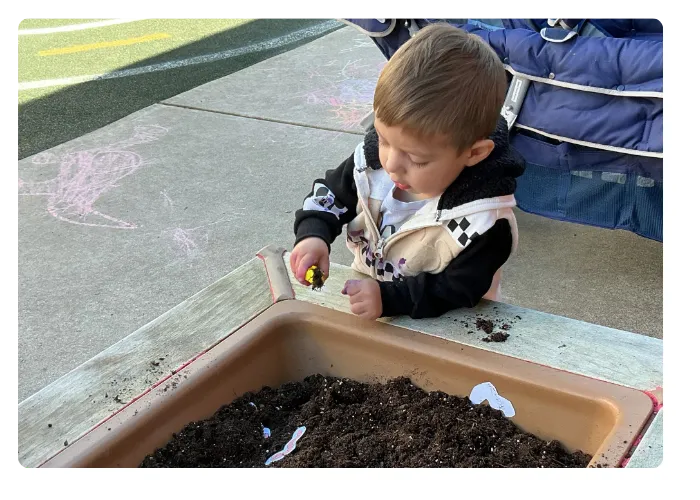 Our natural outdoor spaces feature sensory blocks, trikes, shaded play zones, and more.
